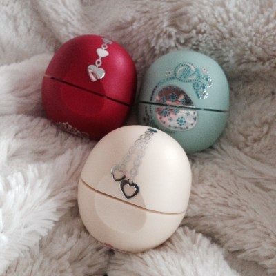 When I was out shopping the other day, I saw these EOS lip balms. I’ve since seen this holiday pack everywhere, taking up whole shelves at Walmart and drugstores. I’d seen many people use the EOS lip balm in the past, and I’d always thought, how weird is that: round lip balm. There was just something so wrong about it.