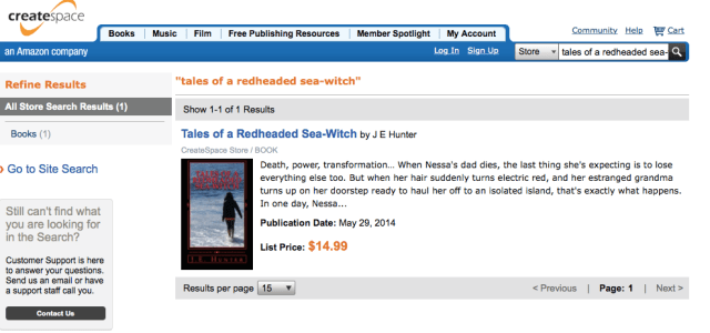 Also, Tales of a Redheaded Sea-Witch is now available on multiple retailer websites. Here is a screenshot of my book up on CreateSpace, where you can order your very own paperback copy of Tales of a Redheaded Sea-Witch. I’ve recently tweaked the cover of the print edition, changing the font and turning the writing red. Doesn’t it POP so much more now? What do you think?